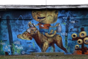 Fragmento personal – Mural Corralito Fragmento personal de la cara Oeste de Mural colectivo de 600m2 ubicado junto a la nueva terminal de Buses de Corralito Artistas: El Lolo, Marcos Santos y PESK VER VIDEO
