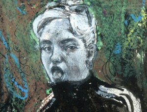 detalleretrato – blanco y negro – 2019 – chica madrird – pintura – pastel oleo Mixed media 10x15cm 2019