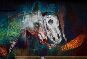 Fragmento personal – Mural Corralito Detalle Mural de 600m2 ubicado junto a la nueva Terminal de Buses de Corralito. Cara Este Artistas: El Lolo, Marcos Santos y PESK VER VIDEO