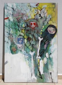 puerta pichon paz perro puta princesa Pesk “puerta pichon paz perro puta princesa Pesk” Serie “4 de 7” / 2014 Técnica mixta (aerosol, acrílico, tintas y pastel oleo) sobre lienzo – 80×120 cm €300