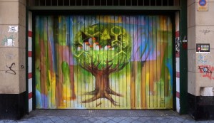 Allí se reunieron 25 artistas para la ejecución de 17 pinturas en puertas de cocheras de dicho barrio.