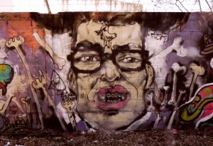 Mateo Diaz AKA “CKN” (Chicken) Mural, Retrato de Mateo Diaz, AKA “CKN” DJ de Dubstep y amigo. Ciudad Universitaria, Córdoba, Argentina 2013